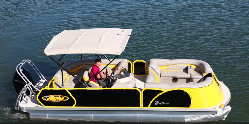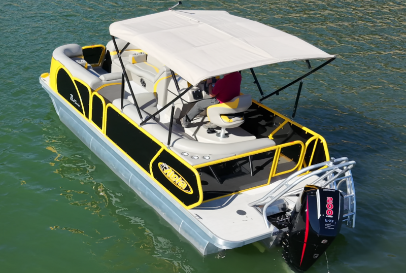 Our 23.5 Foot Aloha High Performance Tritoon comes with a 200hp outboard, seating for 12 people and an oversized entry ladder. Water Ski, Wakeboard, Tube or just cruise the lake in this high performance tritoon!