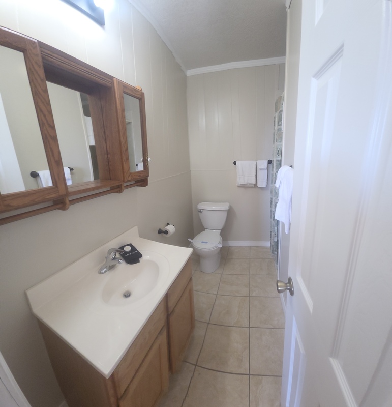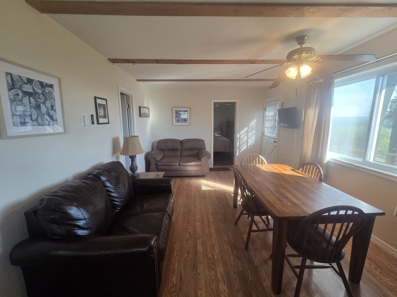 Cabin 10 sleeps up to 5 persons and has 1 king bed in the master bedroom, 1 queen bed in the second bedroom, and a sofabed in the living area. It has central air and heat, 2 bathrooms, and a 30-foot deck. Unit 10 offers an unequaled view of the lake and countryside, and it's very private.