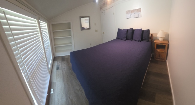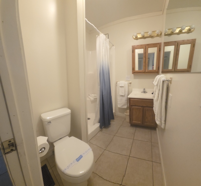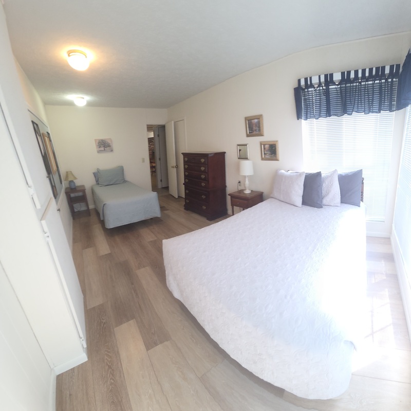 All of the rooms have large windows with blinds so you can control the amount of view and light you wish to have. Because the house is surrounded by tall hardwoods sunlight does not heat the interior through the glass. The result is a cool house even on the hottest day.
