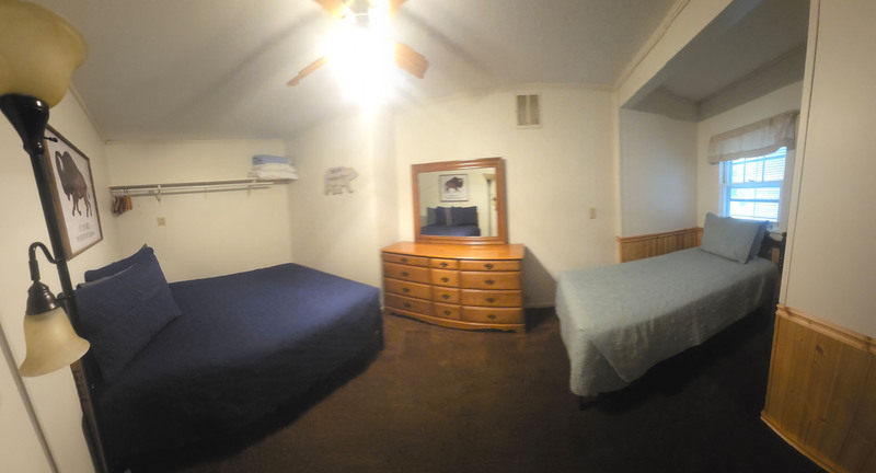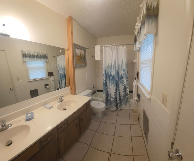The kitchen includes a dishwasher, large refrigerator with ice maker, electric range and oven, microwave, coffee maker, toaster, cookware, tableware, and lots of cabinet space. The island makes meal preparation and serving a snap. The window over the sink has a great lake view. The table seats up to 8 adults, and the breakfast bar on the island can seat three more. The breakfast bar also makes a good place to set up a buffet line. When it is time to stock up groceries are available just 10 minutes away in Mountain Home, Arkansas.