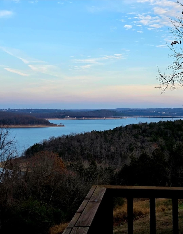 The view of Lake Norfork at dawn from the master bedroom is breathtaking. When you wake up in the morning look over your toes and see what the weather is before you even get up! The deck connects to the screened porch, and a set of steps leads down to the lawn.